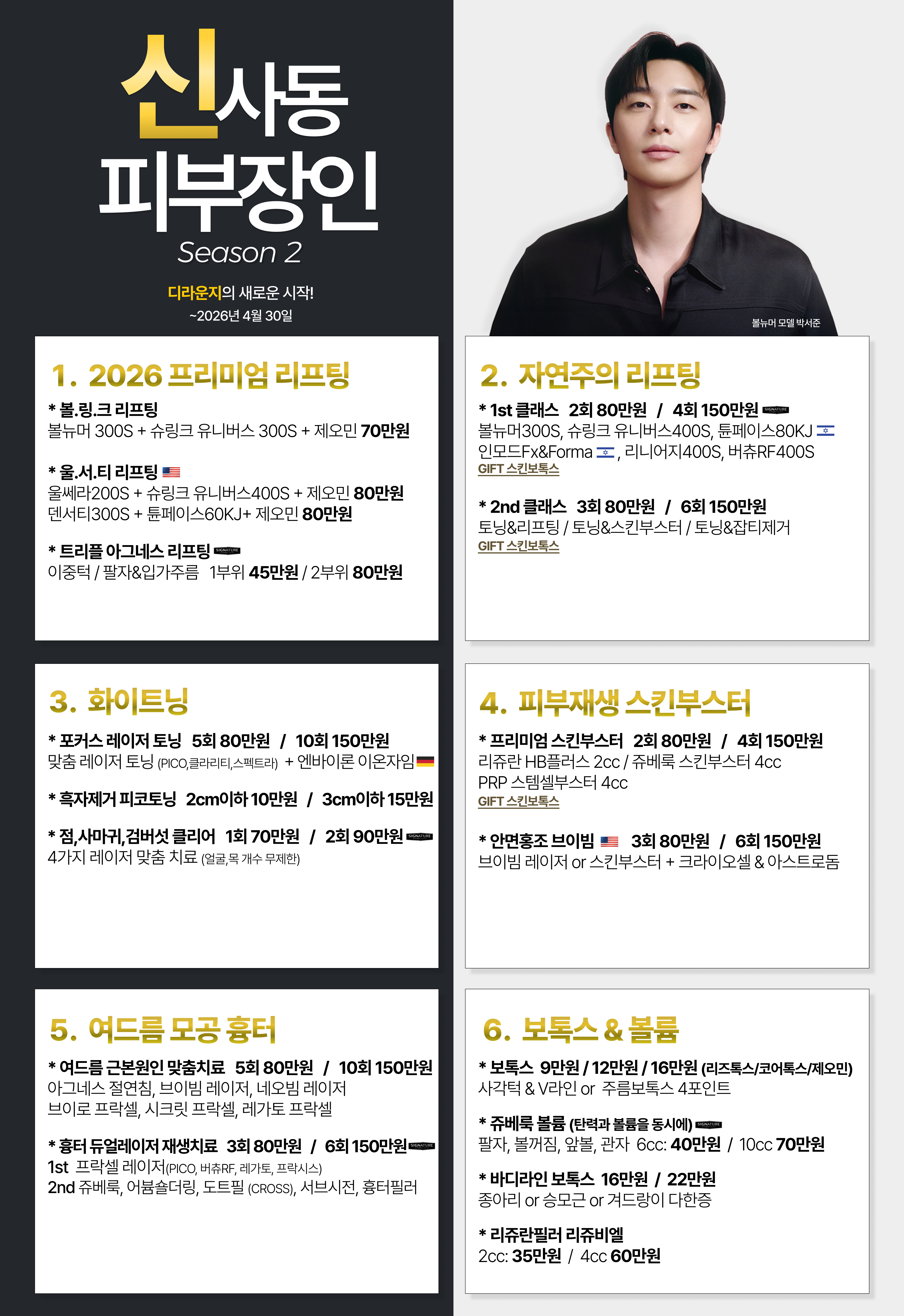 | 제목 | 2026 신사동피부장인 시즌2 프로모션~♥ | 작성자 | 디라운지 |
